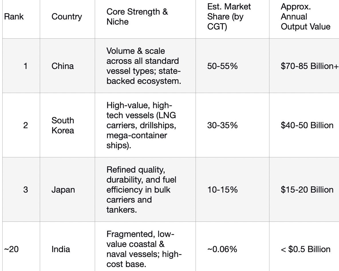 Chronic Fragmentation and Cyclical Busts: The landscape is currently dotted with small, under-capitalised yards that bloom during fleeting booms only to demand bailouts during busts. This prevents the economies of scale and sustained R&D that define the success of Korean chaebols and Chinese state giants.